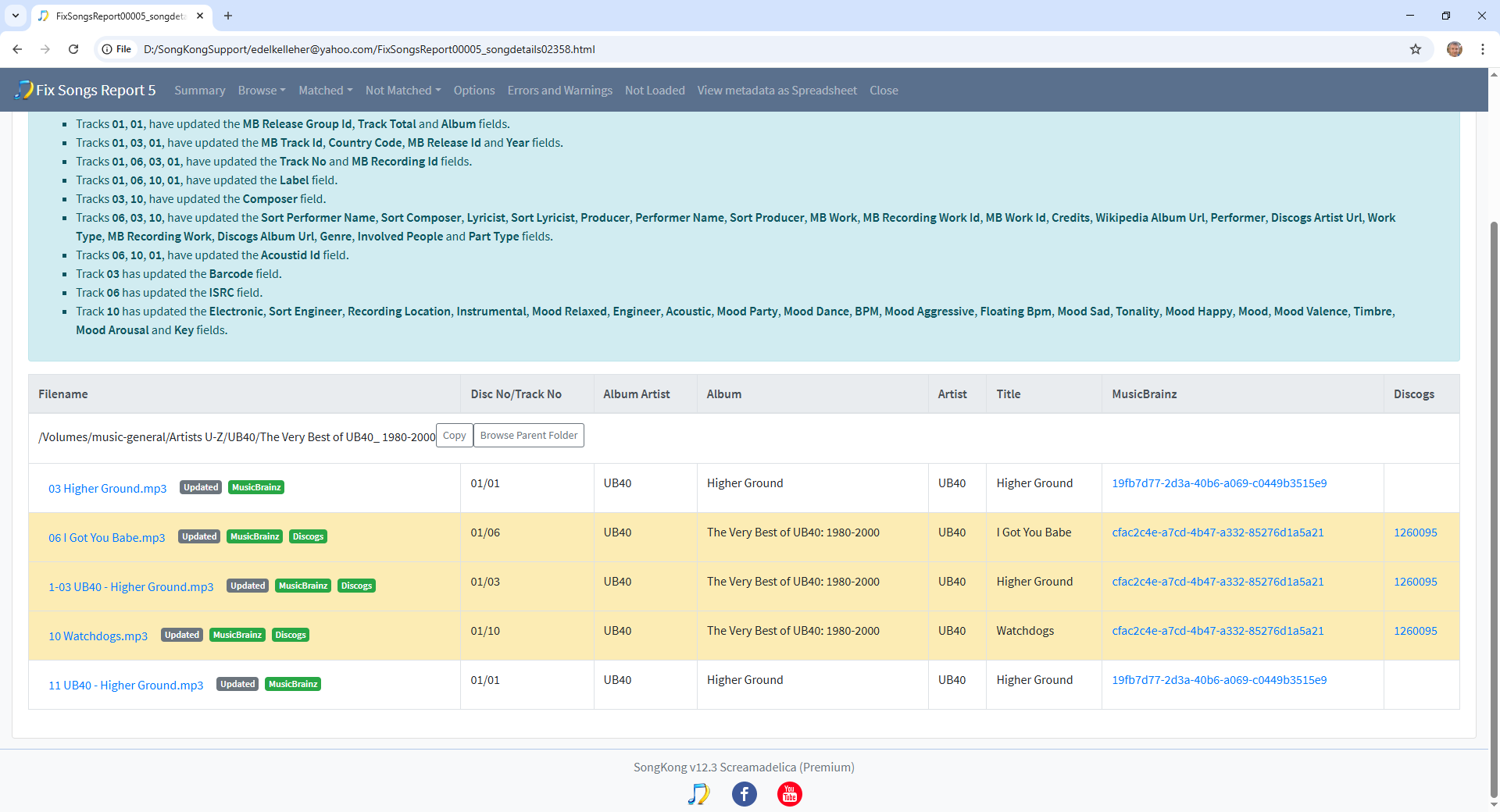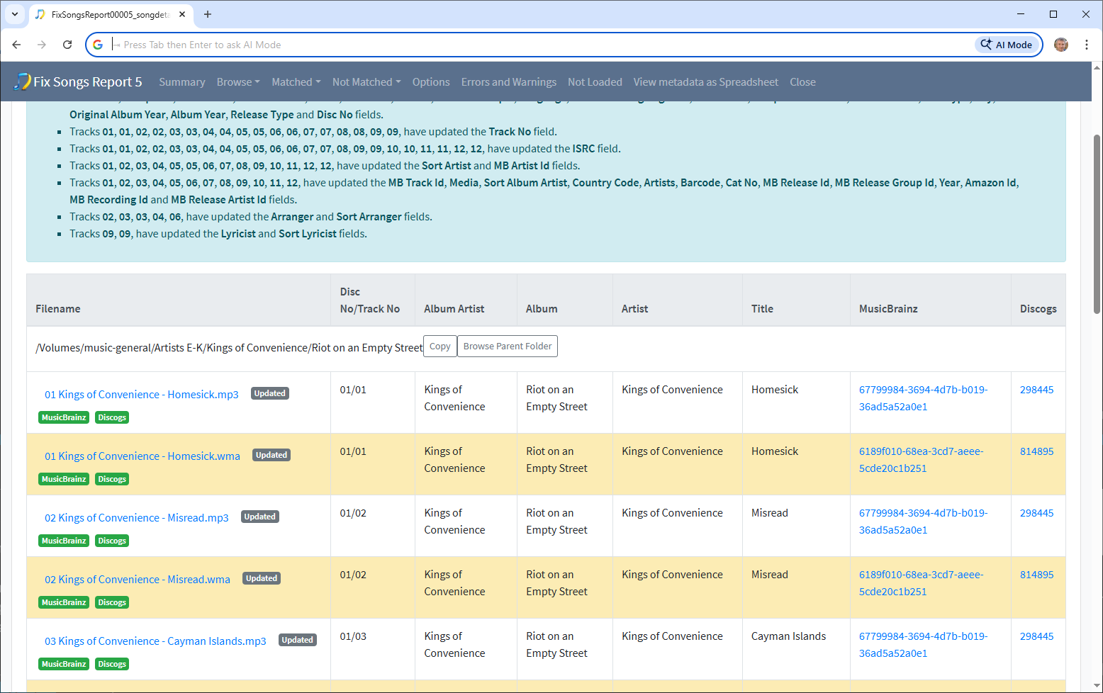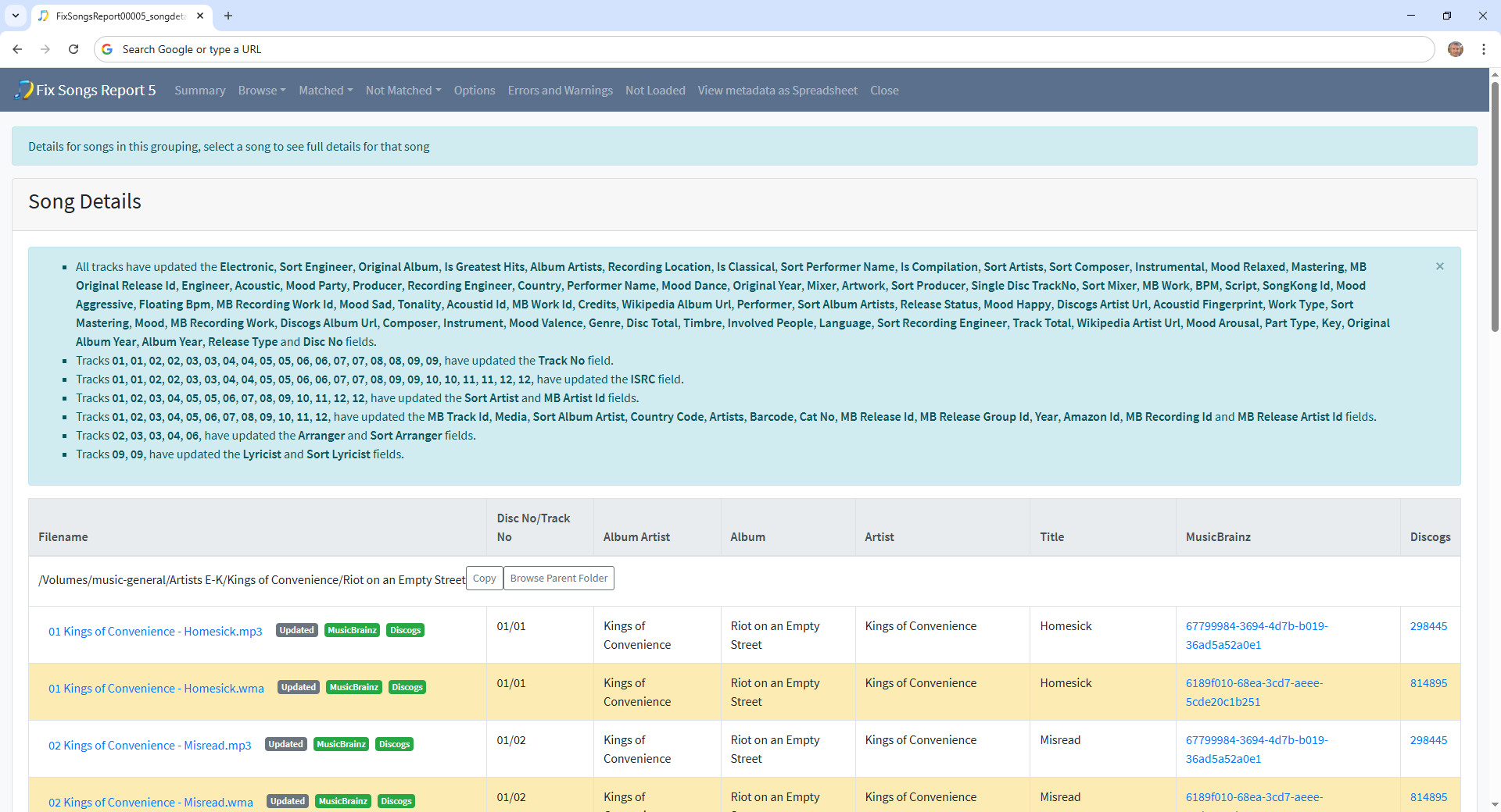 So after running Fix Songs (Report 5) we an see a few things