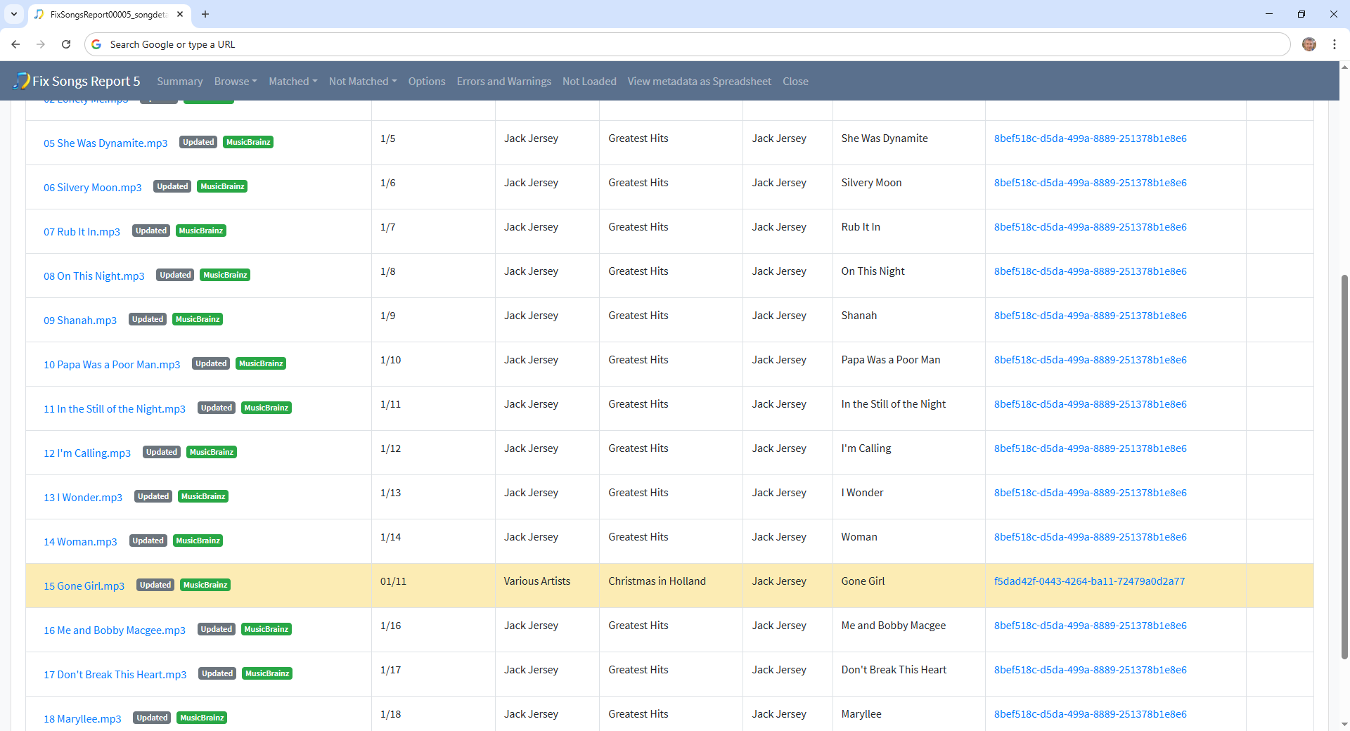 You then ran Fix Songs (report 5) against your whole collection, with matching existing option changed from Rematch if Only Partial Match to Rematch and Preview unchecked again - this improved things but still plenty to do.