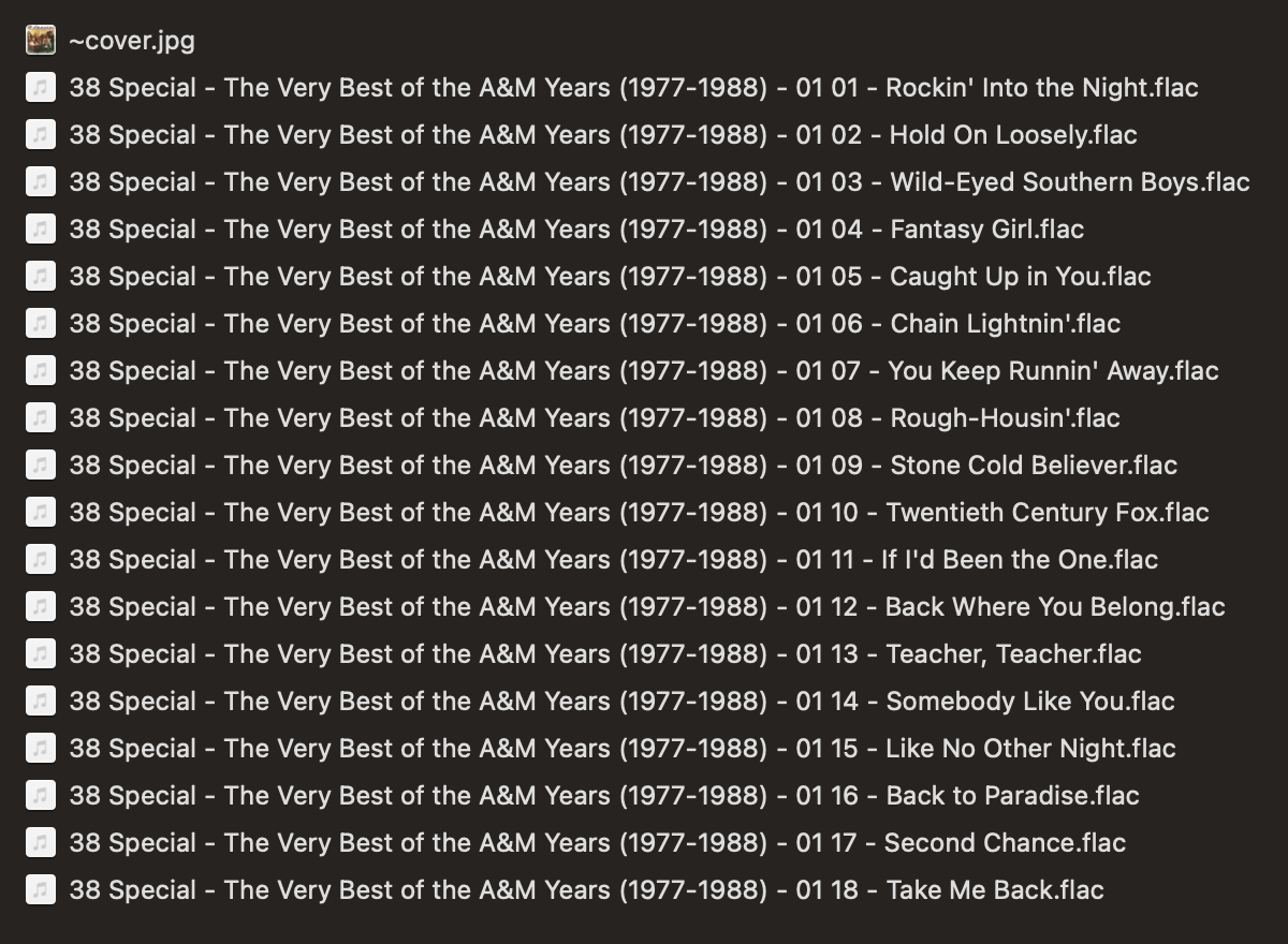 Are you referring to the Status Report I sent previously? Because all of my folders look exactly like the 38 Special folder; it has always been that way. That’s why I suspecting the files are not being displayed properly in MacOS, but it’s never been a problem in the past.
