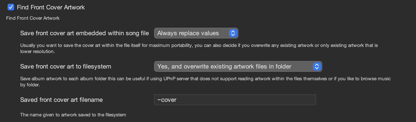 I’m updating my library of FLAC files. Some of the files already had art embedded, some do not. I want all files to be auto-updated and embed the art, but it is not working. Is there a specific setting that I’m missing?