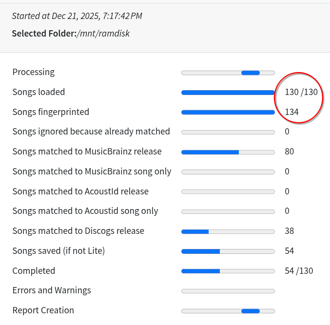 I figured I’d have a go at running SK at a few albums that have not been through Picard to check whether it’d replace Picard entirely (I think the answer is yes, particularly if it consults MusicBrainz if it does not find an album in Albunack).