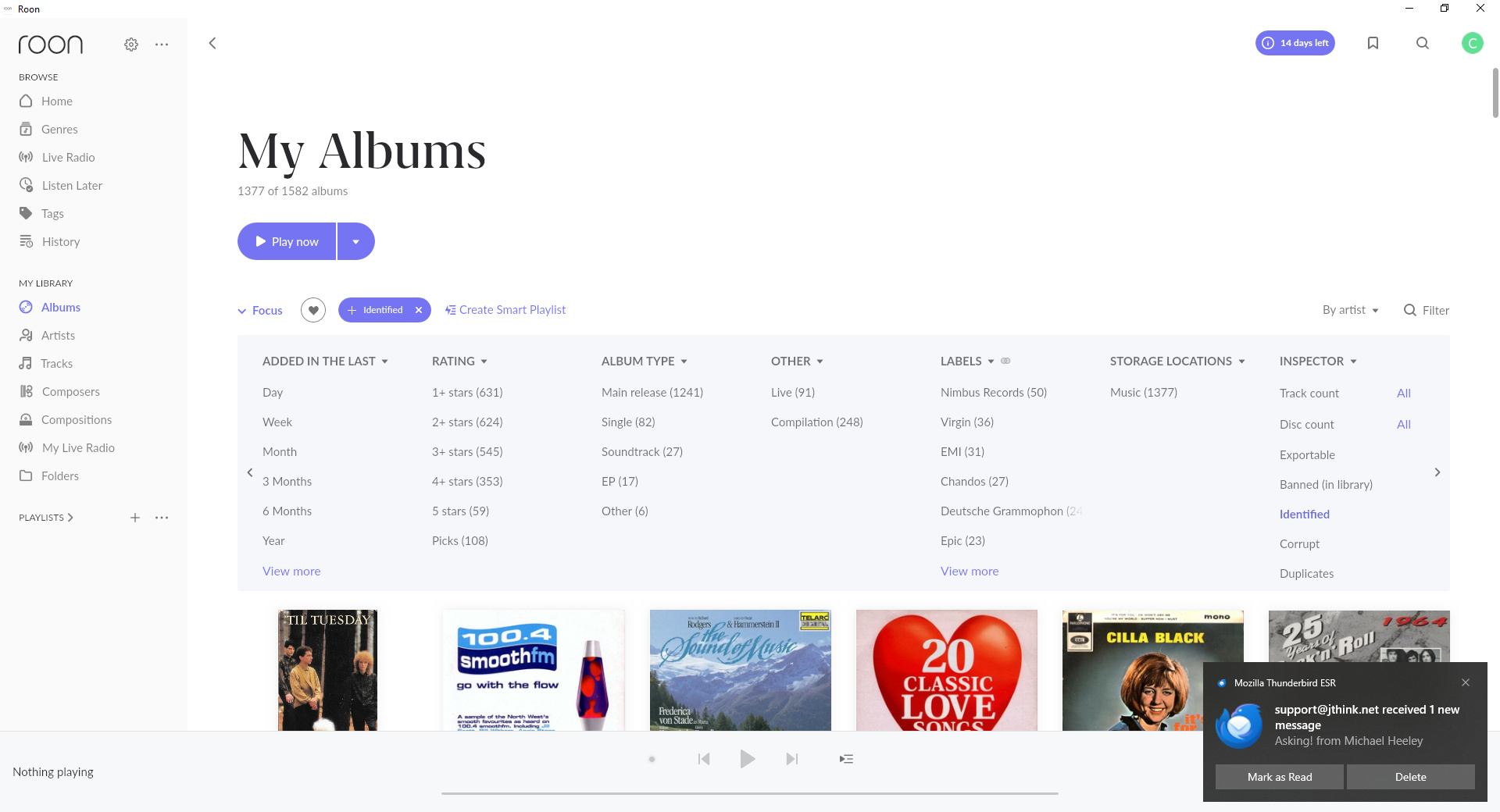 - Select the Identifed option listed under the Inspector column, notice that now under My Albums it says 1377 of 1572 Albums showing how many albums are identified