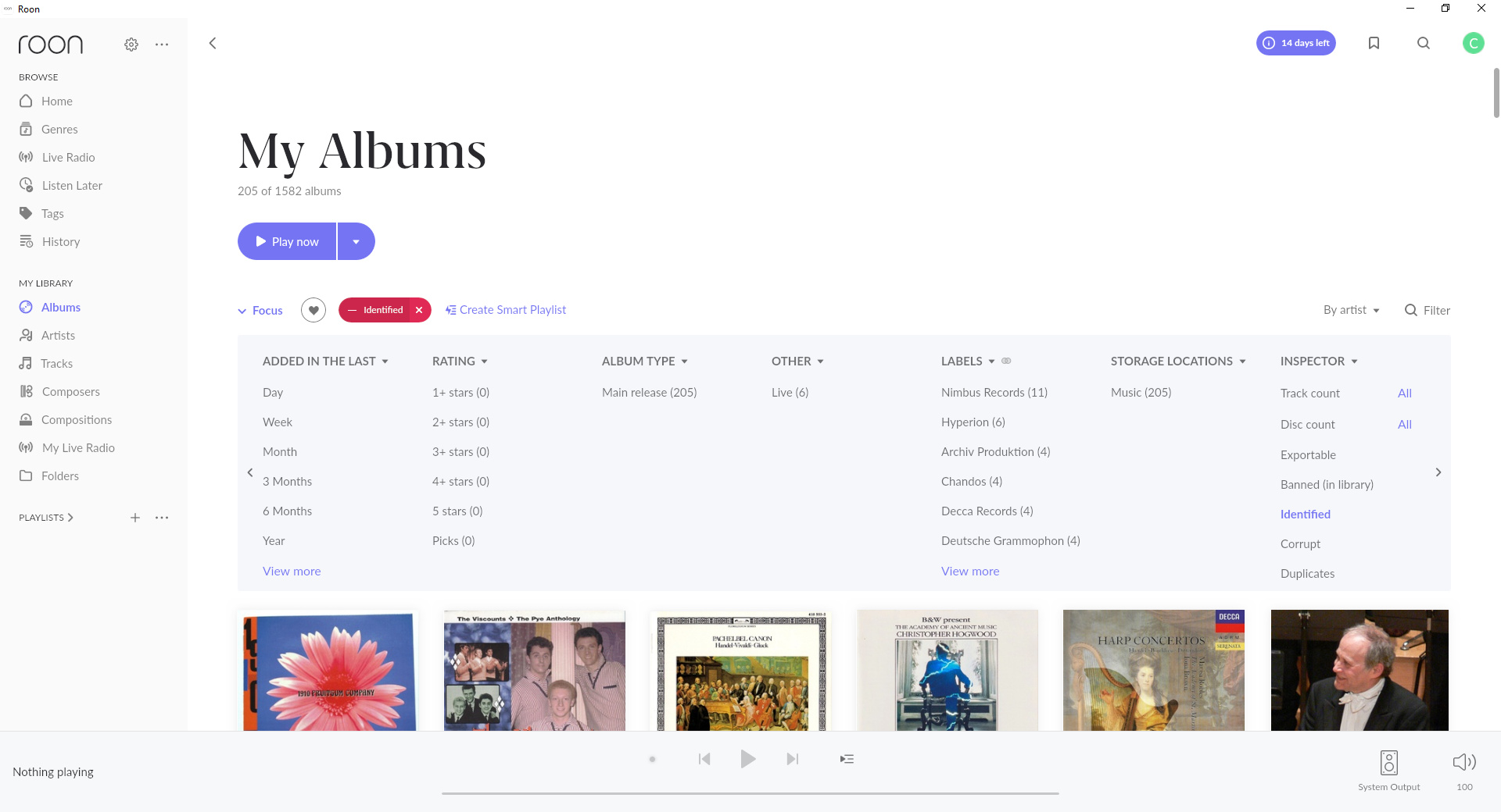 - We can also click on the Identified badge next to Focus to show unidentified albums, the badge goes red and under My Albums it says it says 205 of 1572 Albums showing albums not identified.