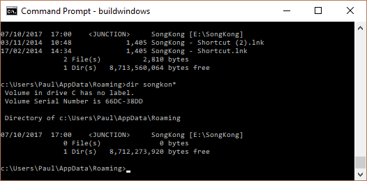 MKLINK /J C:\Users\Paul\AppData\Roaming\SongKong E:\SongKong