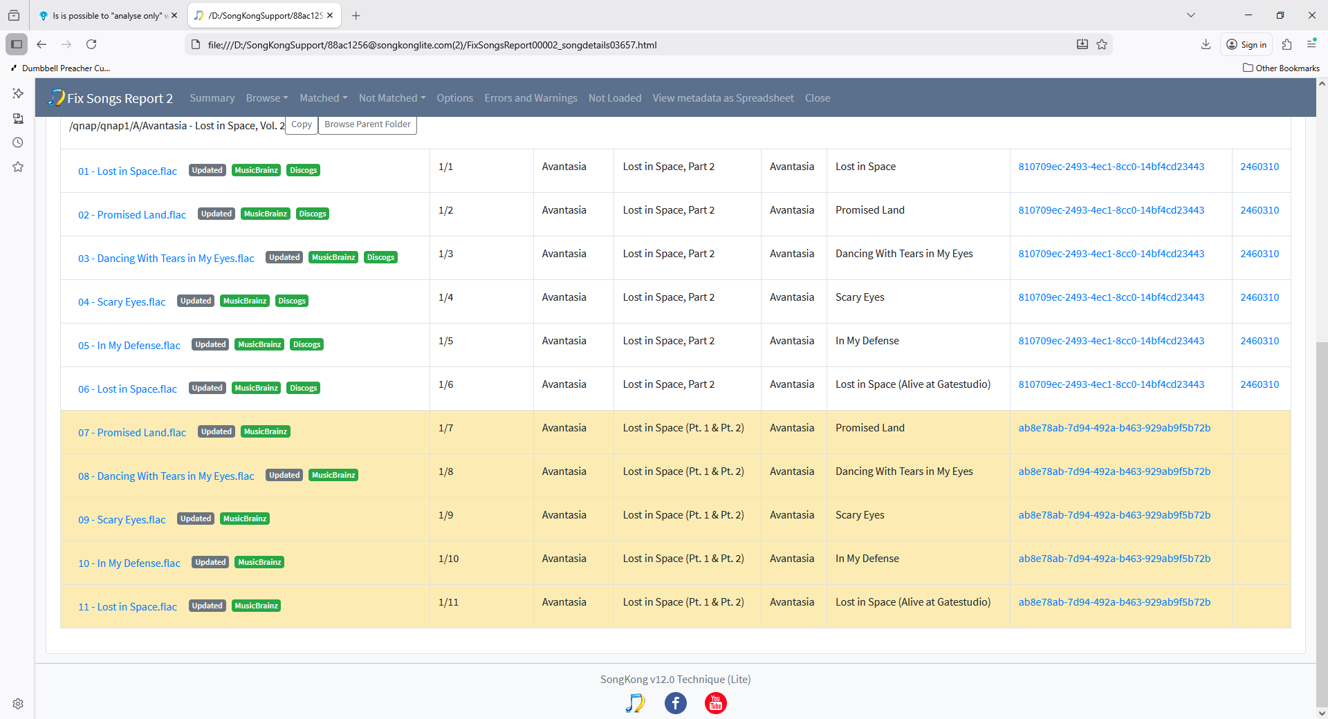 I cannot see any songs matched, then when I click on the folder containing the songs they are all matched to the same release