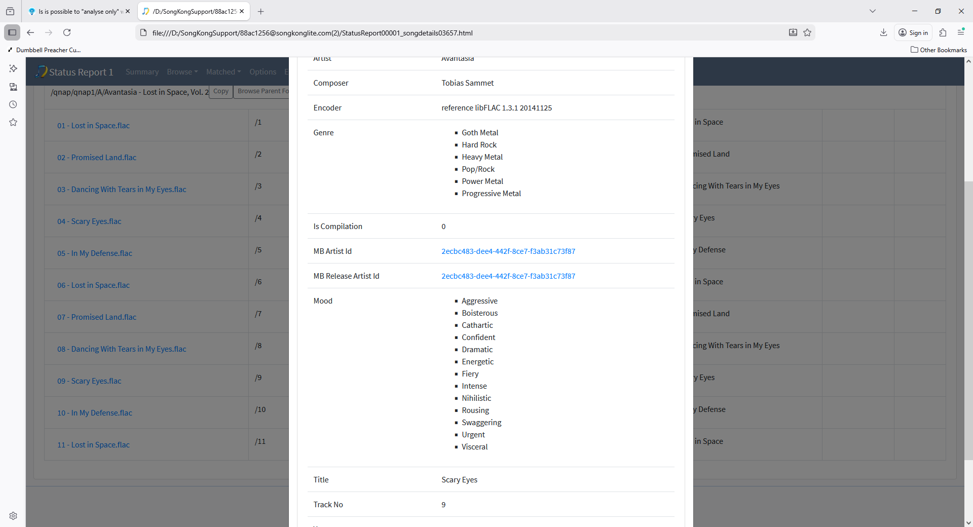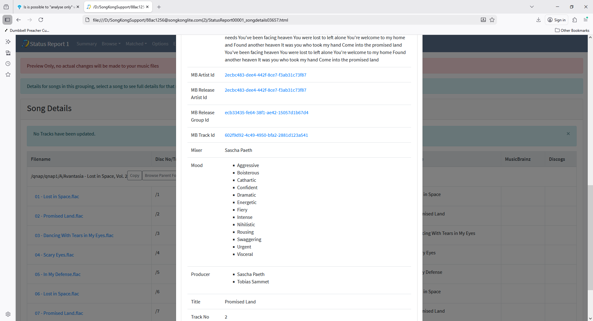 On the MusicBrainz Inconsistencies:Only Song matched tab it lists