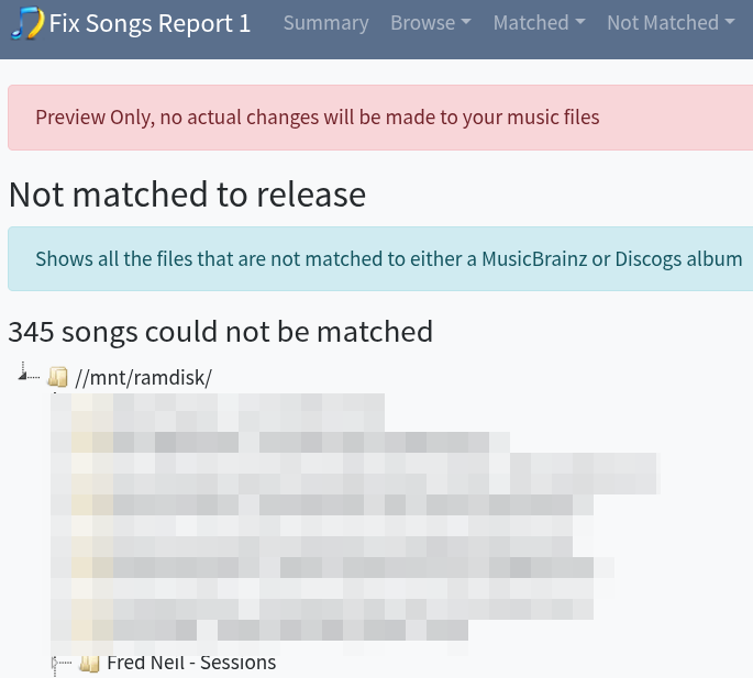 I also checked to see if Silver City would be matched by Fix Songs and it was, so if Fix Songs was run first for real then it Add to MusicBrainz Release would try to add it because it would already have MusicBrainz Ids. I don’t have the Fred Neil album so cannot comment on that one.