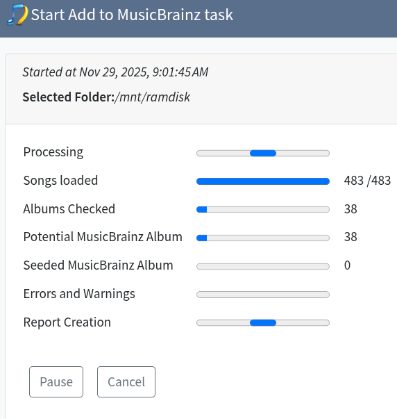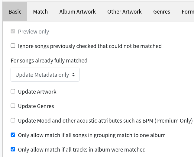 Regarding your other questions, the idea is that Add To MusicBrainz would be run after your songs have been matched to MusicBrainz, usually via SongKong, but also could have been done by Jaikoz or Picard. So at this point SongKong is assuming these albums are not in MusicBrainz, and is certainly not relying on a preview task you may or may not have done, it is just using the information currently in the files.
