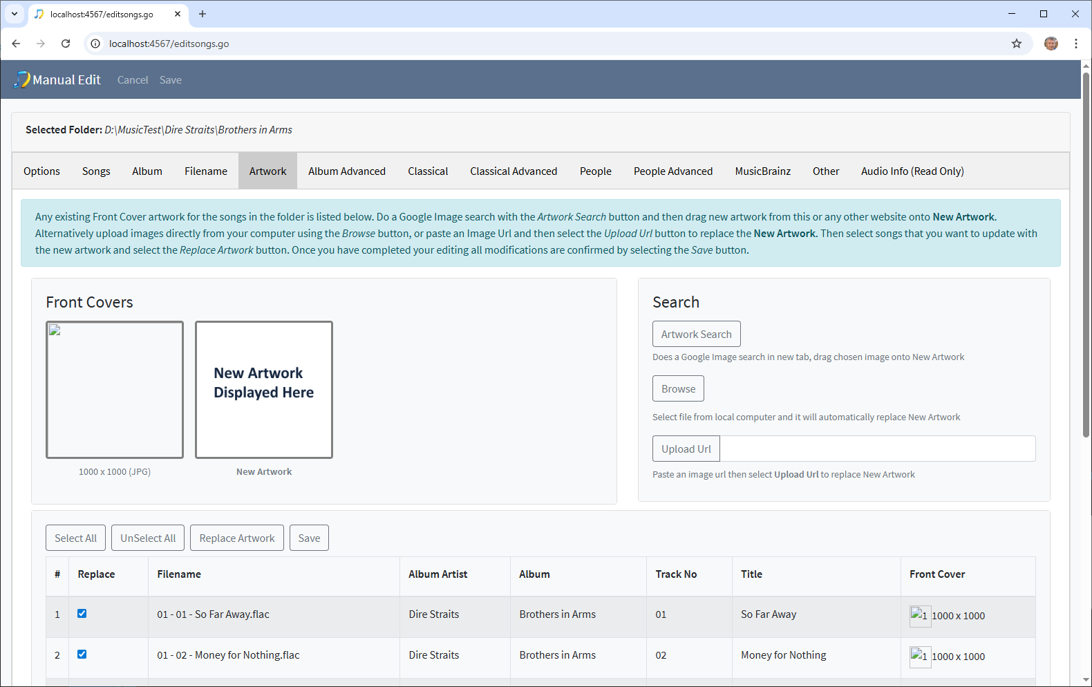 I have been sent some music and I want to simply add a little metadata. But this is not a commercially available album so there is no chance of it matching anything in the online services. How do I simply load it so I see a screen to manually edit the metadata.