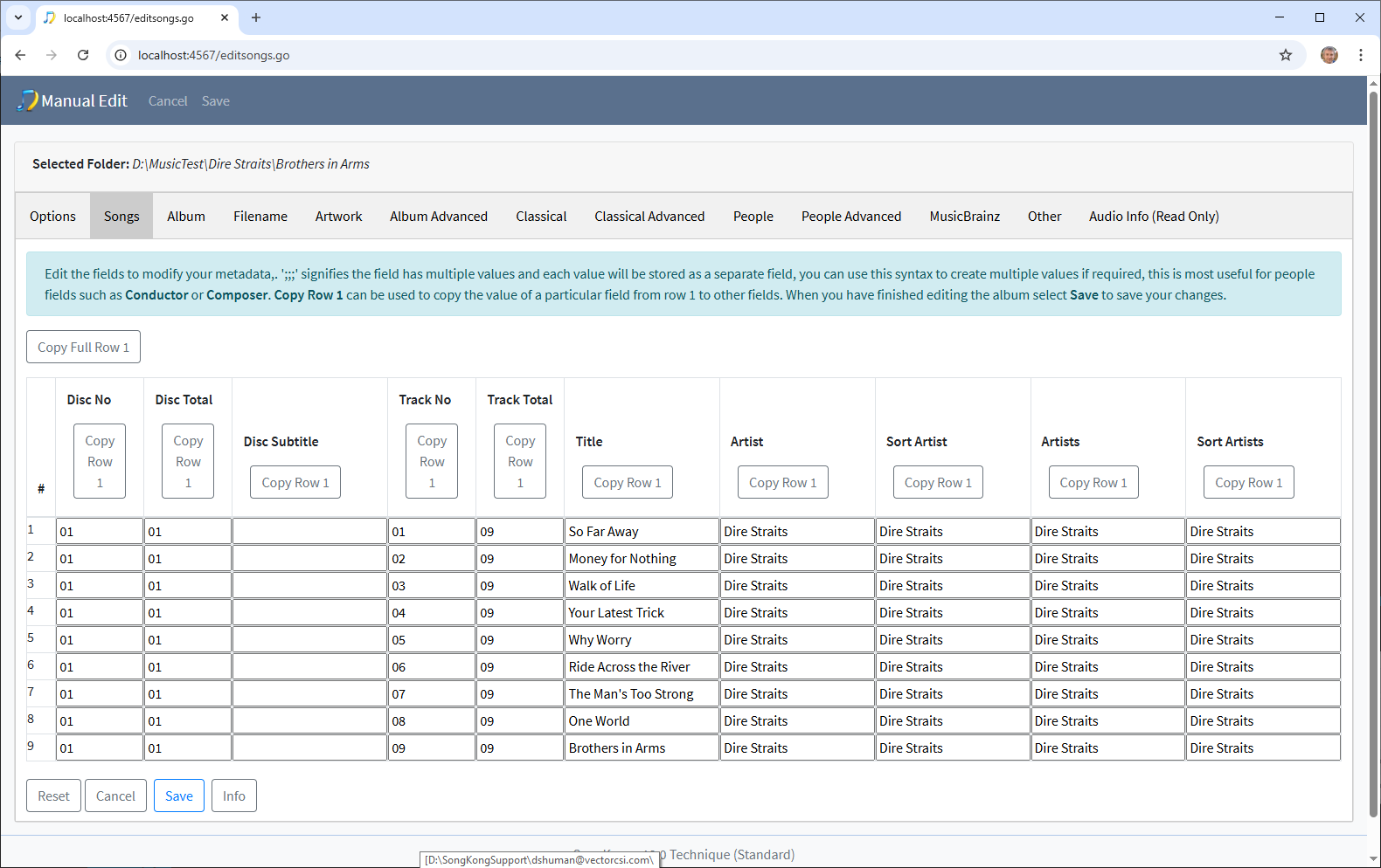 - Now you can switch between tabs to edit the metadata, the basic metadata is on the Songs tab