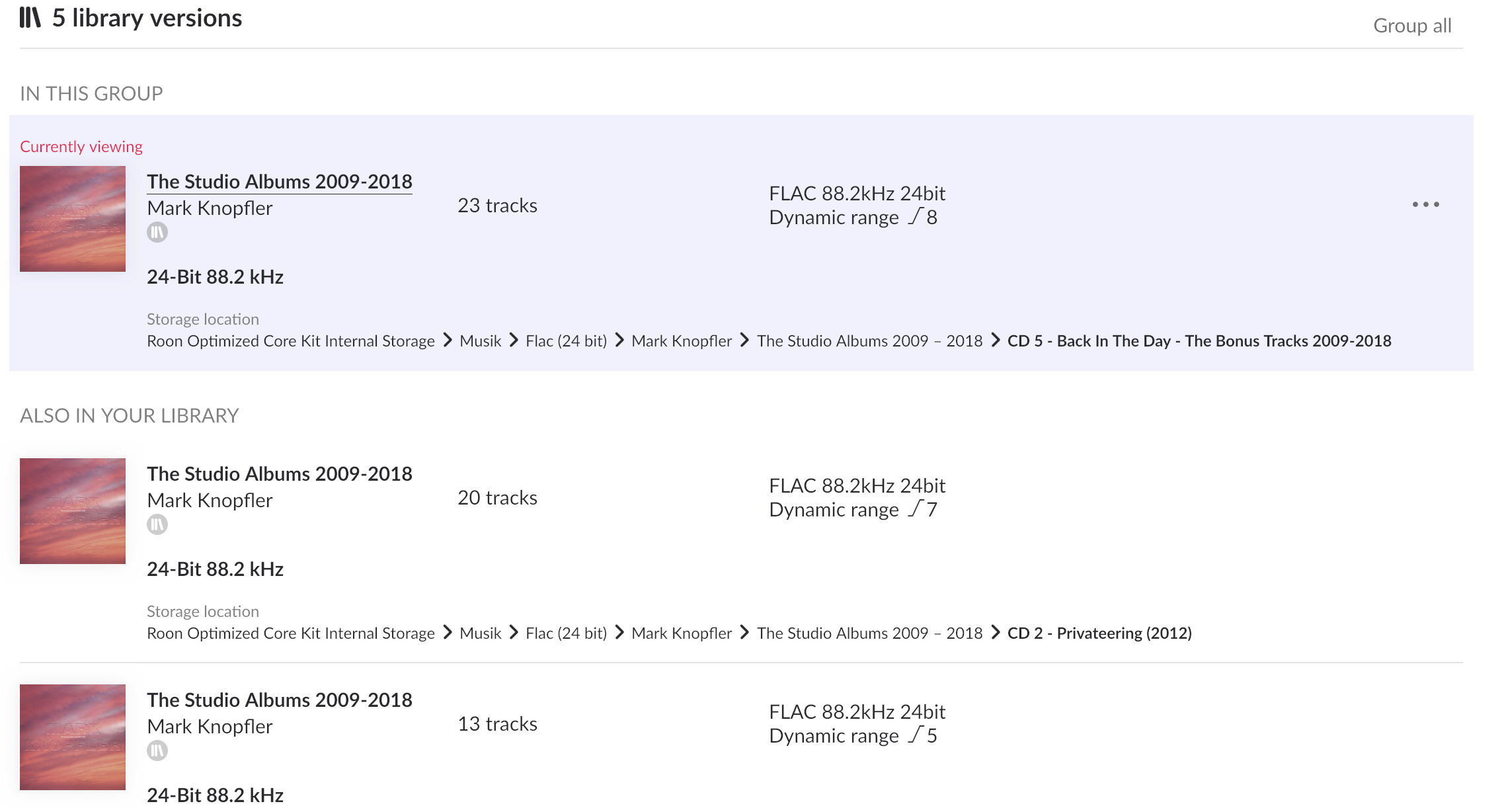 Before posting my original message here on the forum, I actually tried to get Copilot to guide me through tagging the Mark Knopfler compilation The Studio Albums 2009–2018 in SongKong Premium. I have purchased this compilation from Qobuz and added it to my digital music collection in Roon. Unfortunately, Roon displays my downloaded version of the compilation incorrectly — as several separate albums instead of one unified box set.
