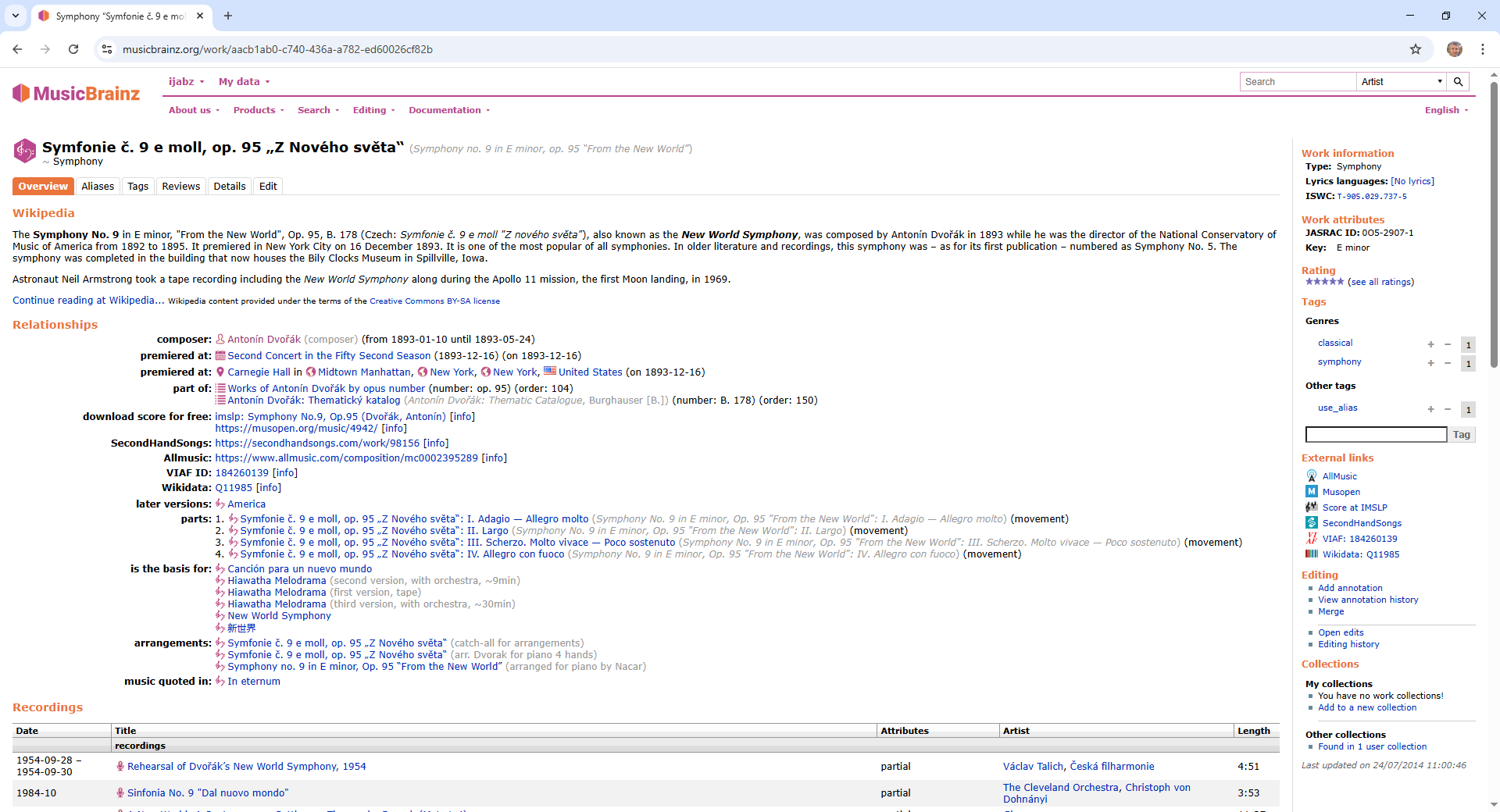 Note there are also Id fields so if we click on the MB Work Level 1 Id field we go straight to the MusicBrainz Work page for this id