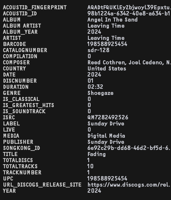 - For dates for VorbisComments you are using DATE and DATERELEASE , SongKong uses ORIGINALRELEASEDATE and DATE, it also has ALBUM_YEAR. and you are using GENRE and DISCOGS_META_GENRE, SongKong uses GENRE and GROUPING