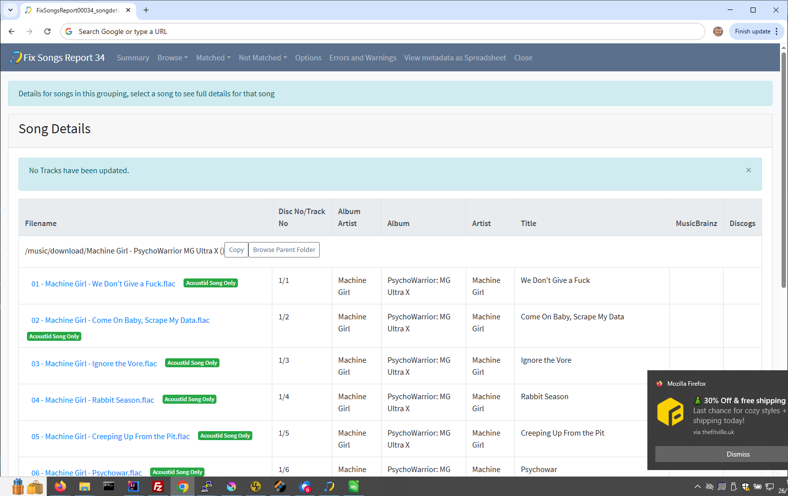 - Re-enable Search for a MusicBrainz match and enable Preview Only and rerun Fix Songs, this will allow report to be created correctly. Because we don’t use MusicBrainz for genres this wont mess up the genre logic, assuming a match to MusicBrainz will link to the right Discogs album this will then allow us to check the genre stuff.