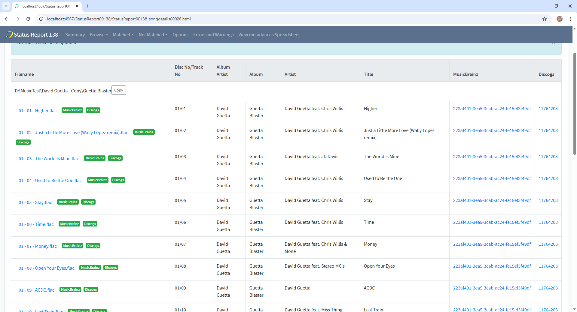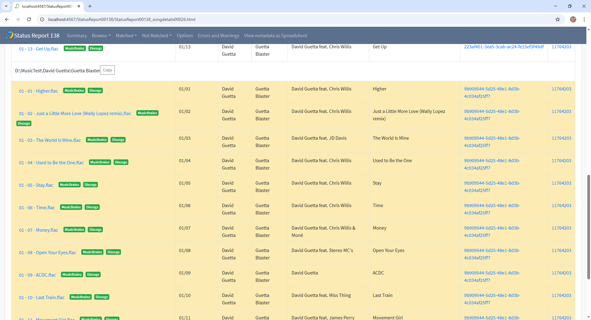 For example here it lists Guetta Blaster with 26 songs matched to two releases