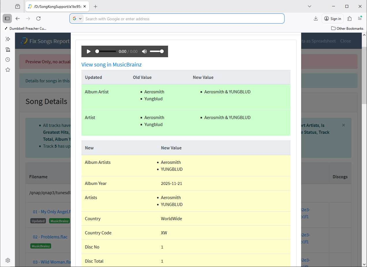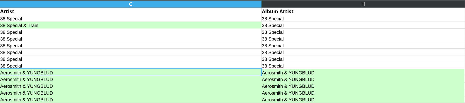 From the screenshot of the spreadsheet it’s clear that SK would replace my two distinct artist and albumartist tags and replace it with artist=“Aerosmith & YUNGBLUD” and albumartist=“Aerosmith & YUNGBLUD”. It’d do the same with 38 Special & Train, replacing artist=“38 Special” and artist=“Train” with artist=“38 Special & Train”.